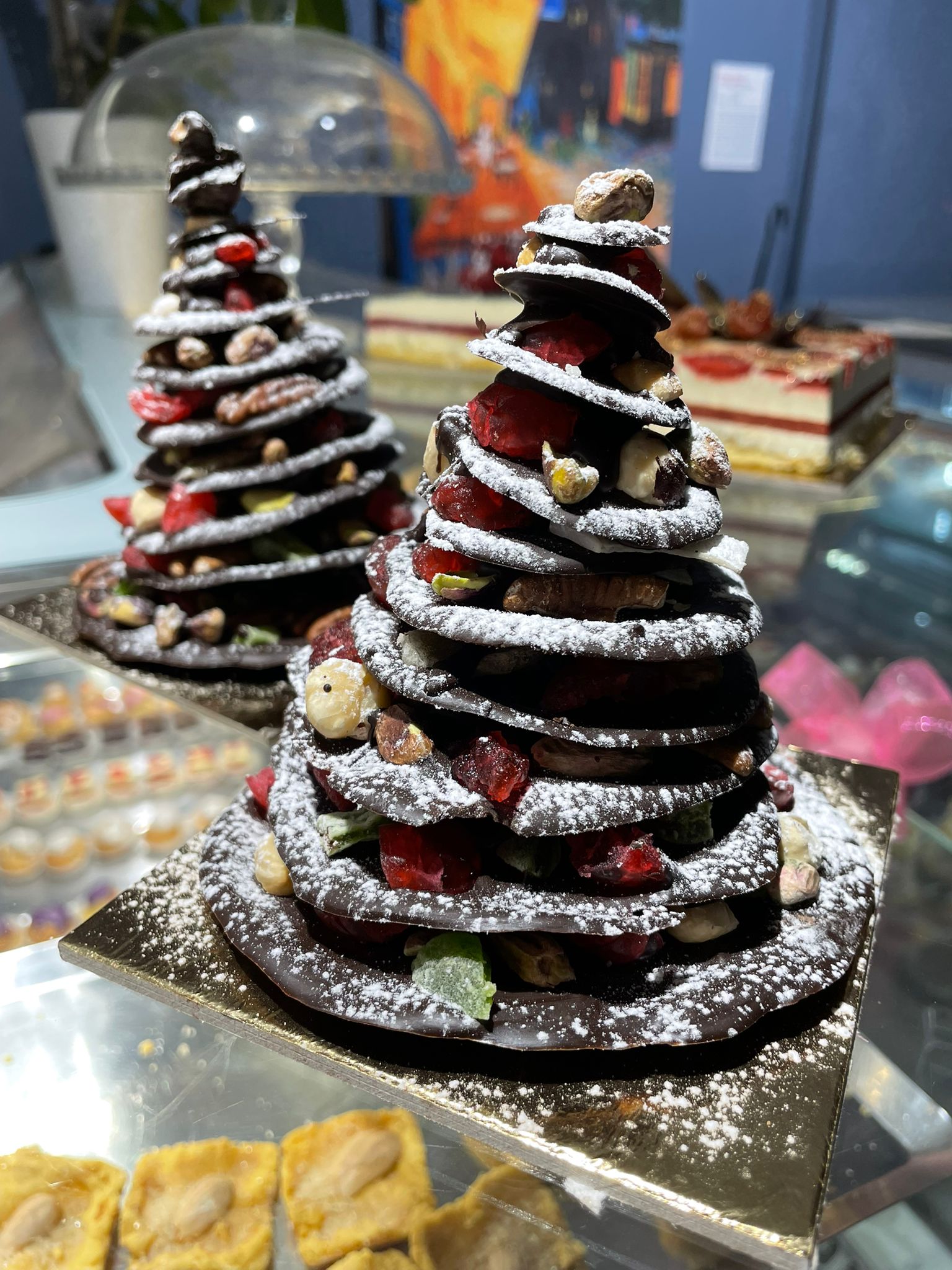 Abete di cioccolato, frutta secca e candita per un dolce regalo