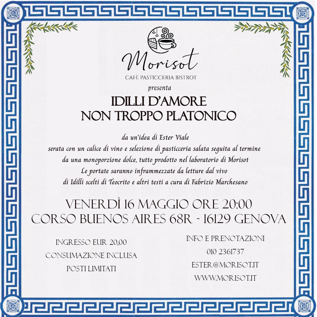 Le portate saranno inframmezzate da letture dal vivo di Idilli scelti di Teocrito e altri testi a cura di Fabrizio Marchesano